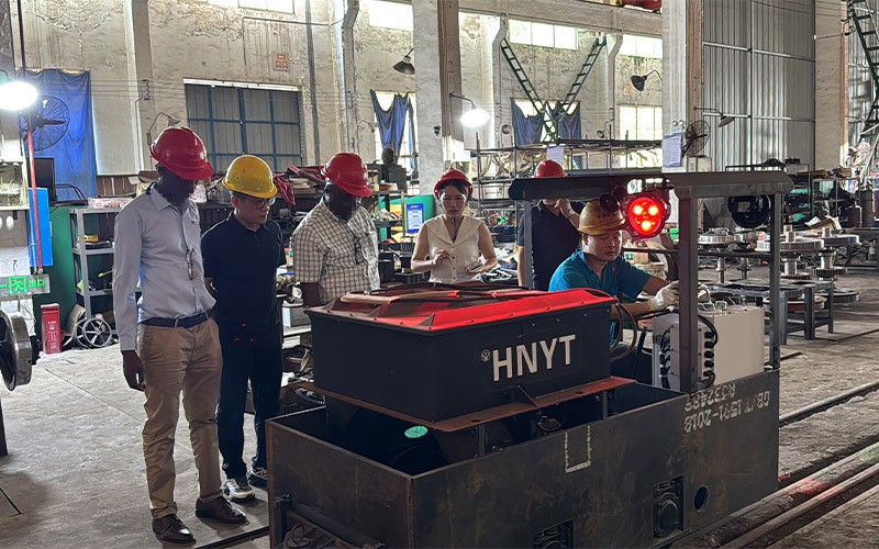 考察期間,公司領(lǐng)導(dǎo)與技術(shù)團(tuán)隊(duì)全程陪同。在電機(jī)車生產(chǎn)車間,客戶近距離觀察了電機(jī)車從零部件加工、組裝到質(zhì)檢的全生產(chǎn)流程,對(duì)車間標(biāo)準(zhǔn)化的作業(yè)規(guī)范、先進(jìn)的生產(chǎn)設(shè)備及嚴(yán)格的質(zhì)量管控體系表示認(rèn)可,切實(shí)感受到公司的生產(chǎn)規(guī)模與制造實(shí)力。隨后,客戶前往產(chǎn)品展示區(qū),詳細(xì)查看了不同型號(hào)電機(jī)車的實(shí)物與性能演示,對(duì)產(chǎn)品的設(shè)計(jì)細(xì)節(jié)與運(yùn)行穩(wěn)定性產(chǎn)生濃厚興趣。